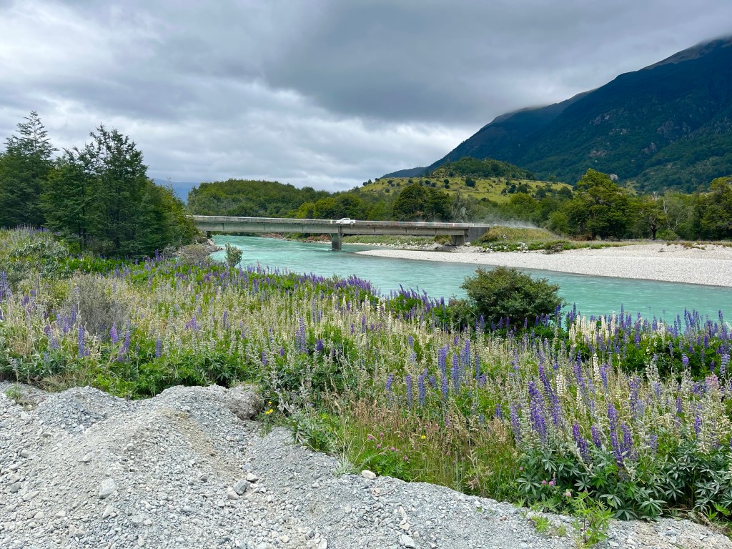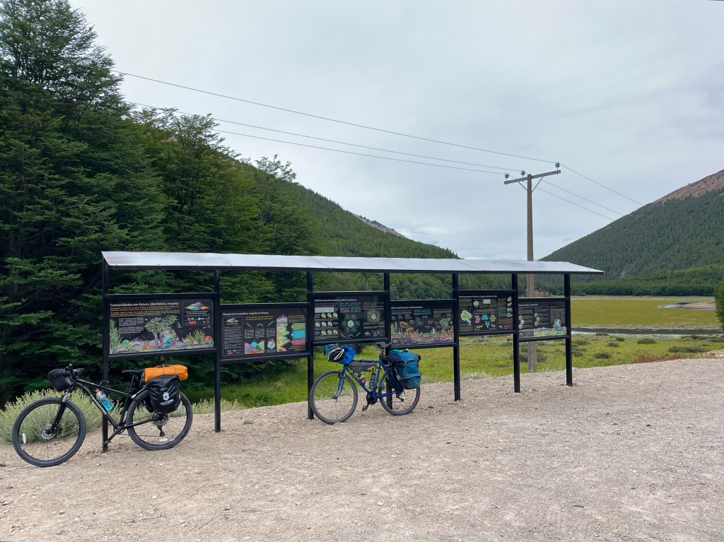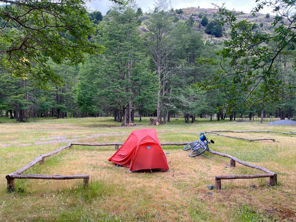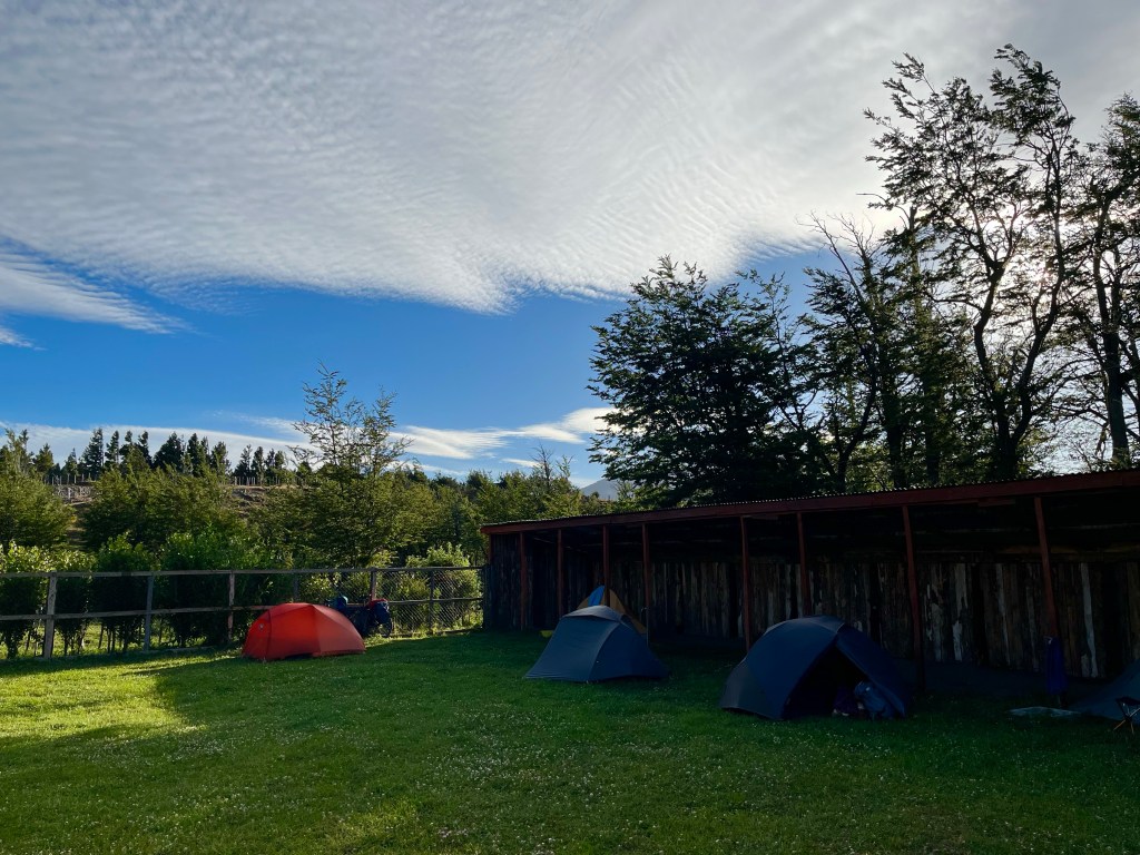 The long gradual downhill never seemed to materialise, and soon I was near the edge of the lake, pausing to take on some fuel and reapply my sun tan lotion in the warm sunshine, I realised I still hadn’t reached the point at which Desiree had camped the night before, and had only just past it, when she messaged again to say she had found some available beds in a dormitory cabin at Camping Río Chirifo.