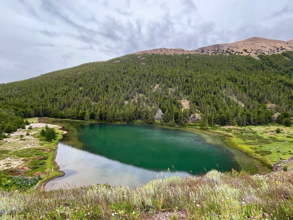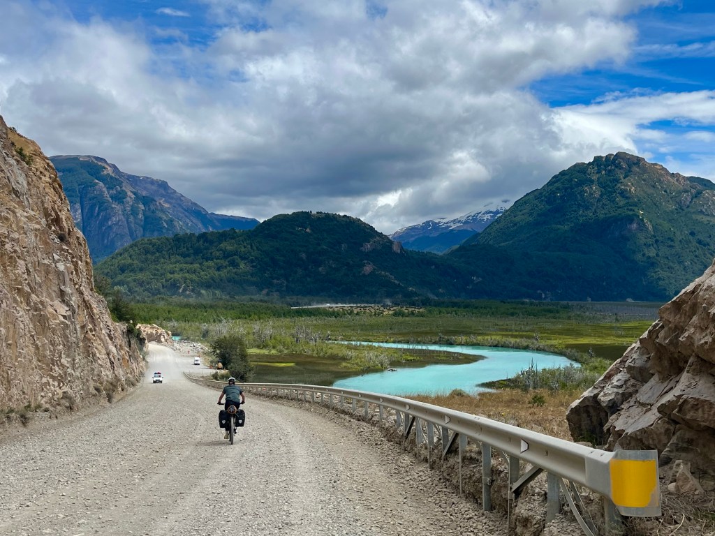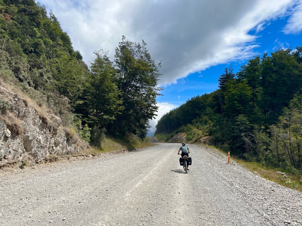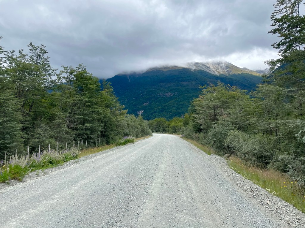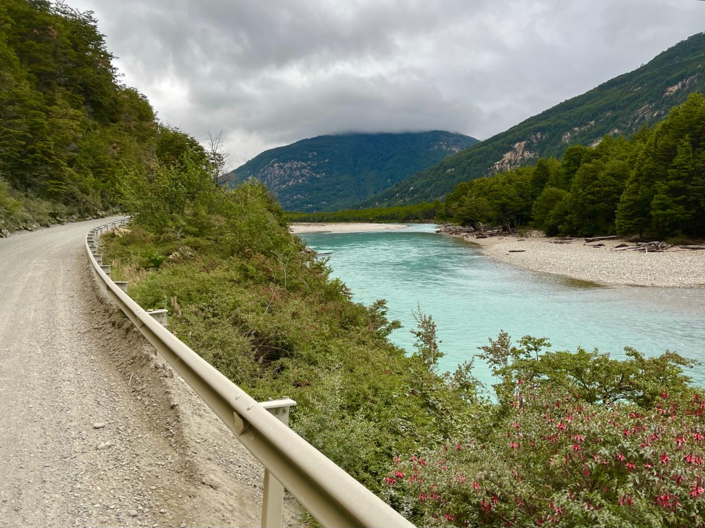 The long gradual downhill never seemed to materialise, and soon I was near the edge of the lake, pausing to take on some fuel and reapply my sun tan lotion in the warm sunshine, I realised I still hadn’t reached the point at which Desiree had camped the night before, and had only just past it, when she messaged again to say she had found some available beds in a dormitory cabin at Camping Río Chirifo.
