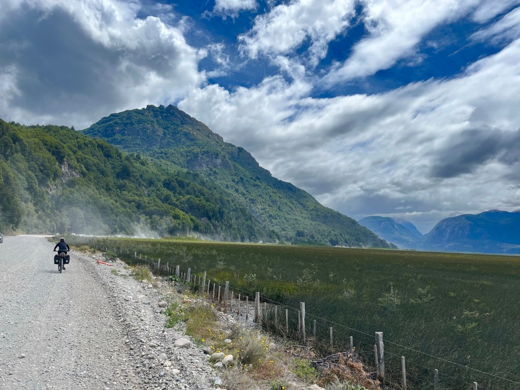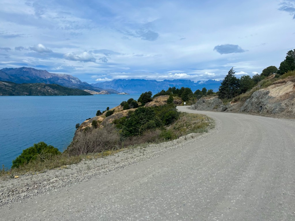 After I’d set up camp, my phone picked up a little reception, and I received several messages from Desiree, saying that she’d met a Danish cyclist, while she was at the side of the road trying to catch a lift, and he’d told her that there was a campsite in 12 kilometres, so she’d set off towards there, before optimistically putting out her thumb towards a passing vehicle, and had ended up getting out by Lago General Carrera, and was at a campsite, around 10 miles from Puerto Río Tranquilo, and about 13 miles ahead of me.