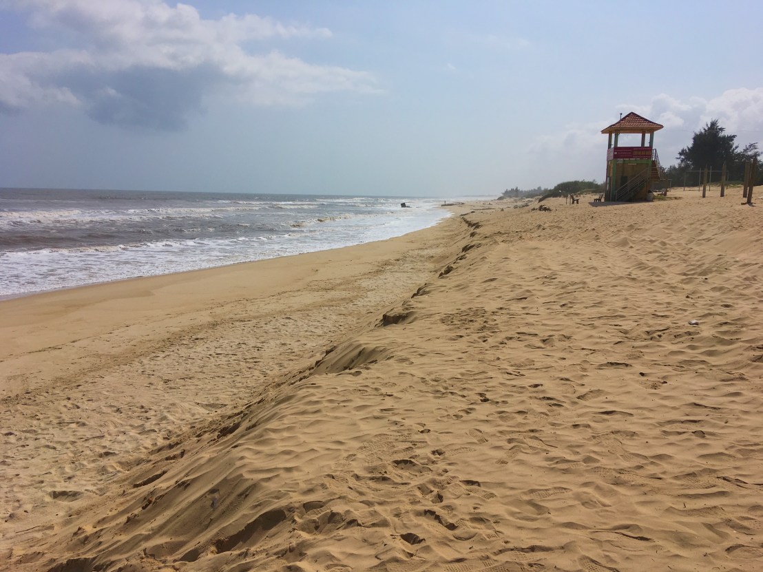 I headed over the river towards the sea, reaching a deserted stretch of beach beside a huge new hotel construction site. Looking out to sea, I suddenly remembered that it was the South China Sea, part of the Pacific Ocean. I was about to cycle down the Pacific Ocean, again!