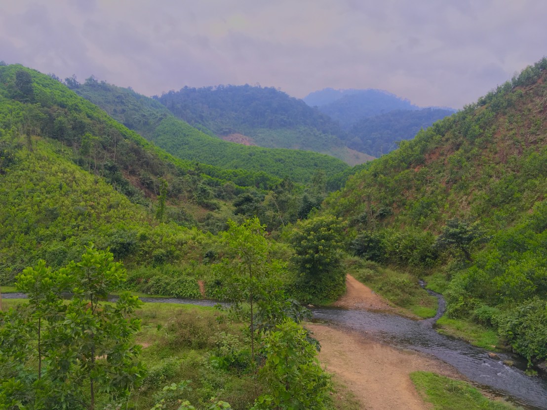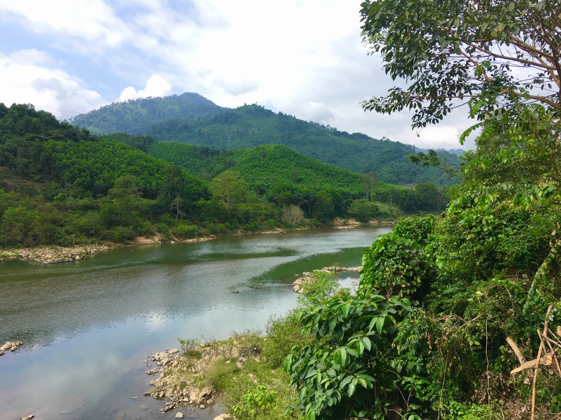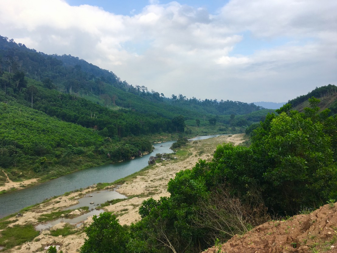 Hitting the road with Pierre, at 9 o’clock, we quickly realised that Thanh My was bigger than we’d realised and perhaps our dinner options weren’t quite so limited as we’d thought. We were back on the Ho Chi Minh Highway, and were wending our way along the side of a river gorge. The day started with rolling hills, but we soon realised that, as the river was flowing in the opposite direction to us, the chances were that the road would be gradually working its way upwards.