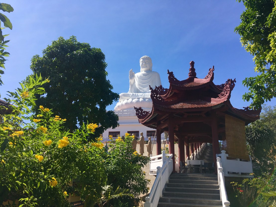 Setting off around 9, conditions were perfect, it wasn’t too hot, with a light breeze, and the tarmac was smooth as silk. Hills? Yes, well, you can’t have everything. The road featured a series of long climbs and quick descents. After 12 miles, we reached the busy little town of Kon Tum, wandering around the grounds of a Buddhist Temple, lured in by a large Buddha that towered over the west side of the town.