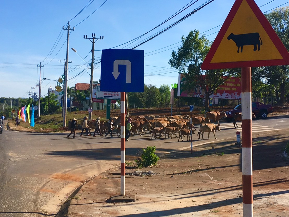 The long climbs continued, but the downhills had been replaced by long straight false flats, and when I reached Pleiku I was back up at 800 metres altitude.