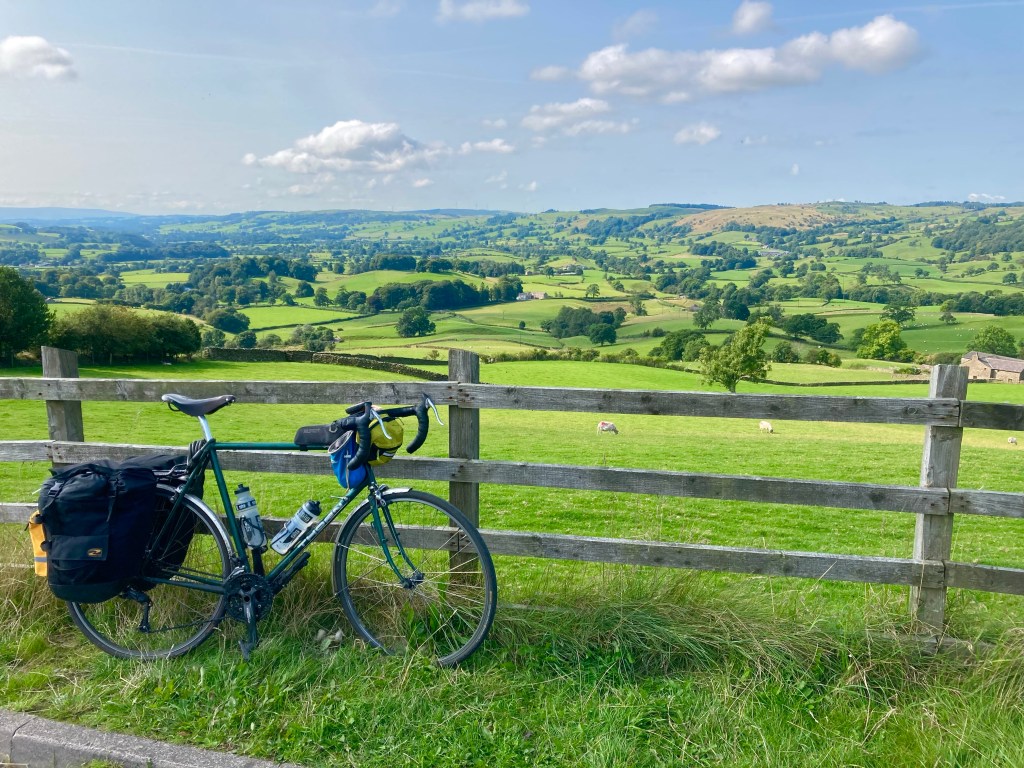 I awoke early with the sun shining through the walls of the tent, and was feeling particularly sore. I had a shower and quickly grabbed a roll and sausage from the cafe at the campsite, before walking my bike up the steep hill that left the farm. It was 10 o’clock on a beautiful morning, as I passed through a gate out onto a stunning high moorland, so peaceful that the sheep sunbathing on the road didn’t move a muscle as I pedalled on vigourously up the hill.