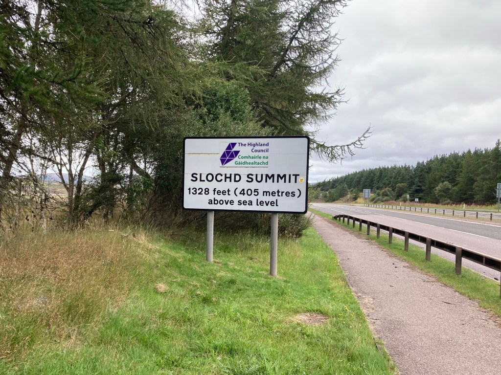 But now it was approaching 3 o’clock, and I’d still only covered just over 20 miles for the day, and next on the agenda was the climb over the Sloch’d Pass, at 400 metres, but the gradient was kind, and the weather was fair, as I gradually crept up the old road towards the summit, where old road, new road and railway line meet briefly in the passing.