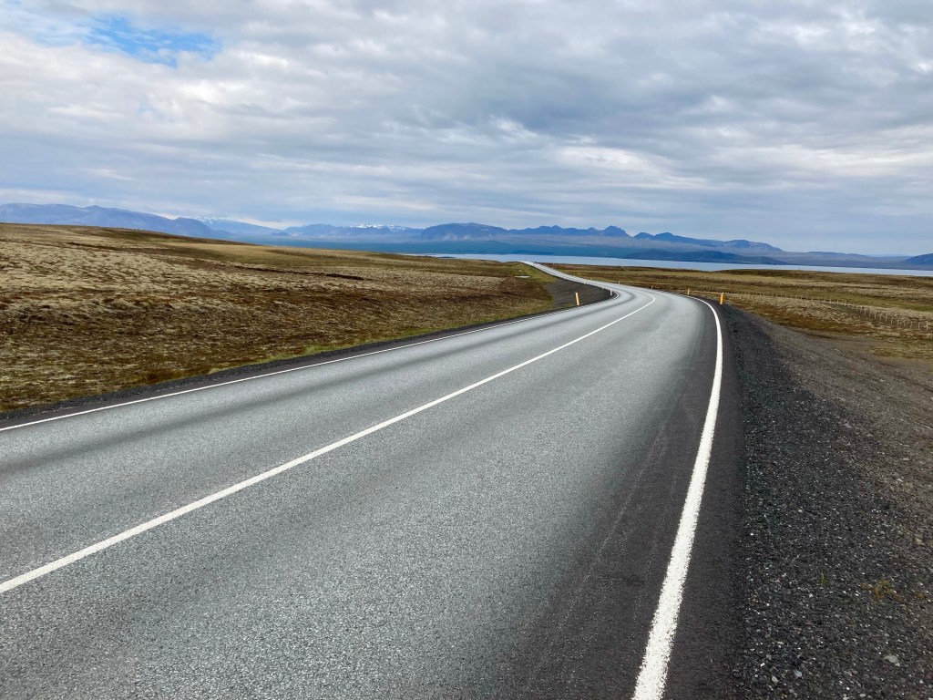 I soon turned onto highway 36 and started the golden circle proper. A two-lane road with a good surface, it rose gradually beside a mountainous backdrop. Soon the landscape opened out and the endless horizons reminded me of those I’d encountered in the far north of Scotland on LEJOG.