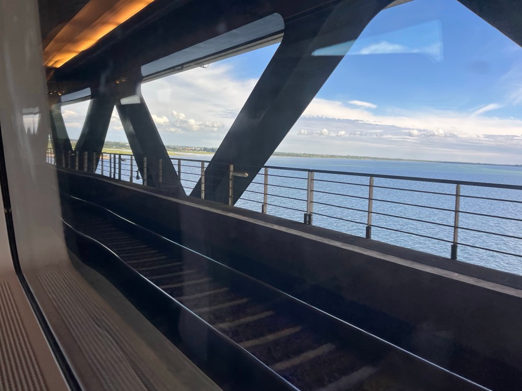 After enjoying a leisurely stroll around the bustling town centre, and a ‘pizza donut’, I made my way back to the train, ruing having left my phone adapter on my bike at Copenhagen station: my power bank was fully depleted and my phone was at 2%, when I returned to Danish soil once more.
