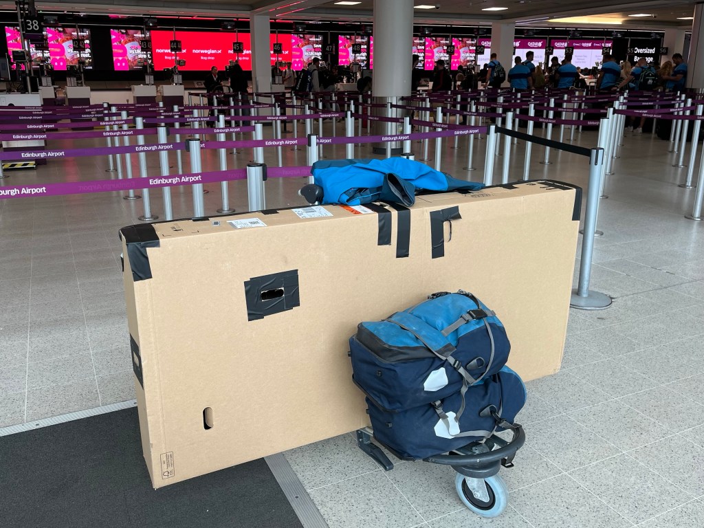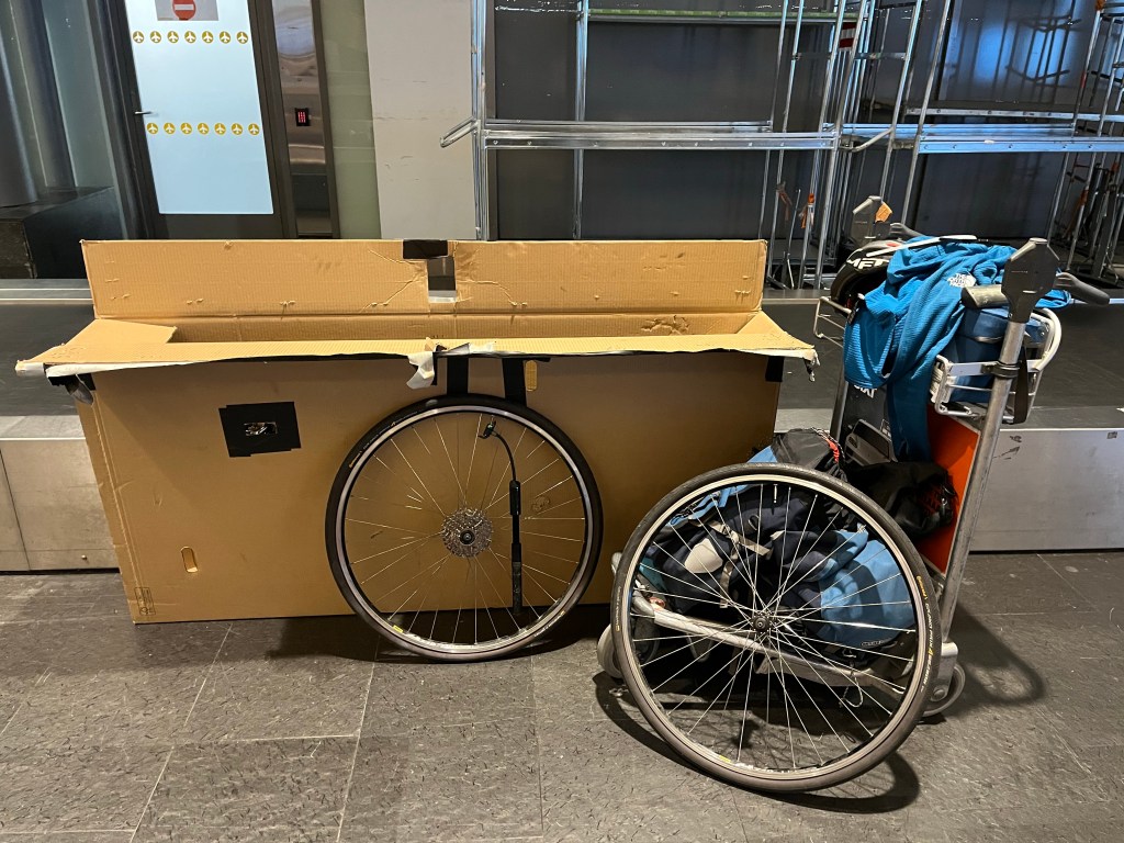 After exiting the plane, and collecting my baggage, I was relieved to see that my bike box and pannier, which had been in the hold, looked like they had had an easy time of it, so I was feeling confident that I’d have my bike built up in no time and very soon be on my way into Oslo on the train.