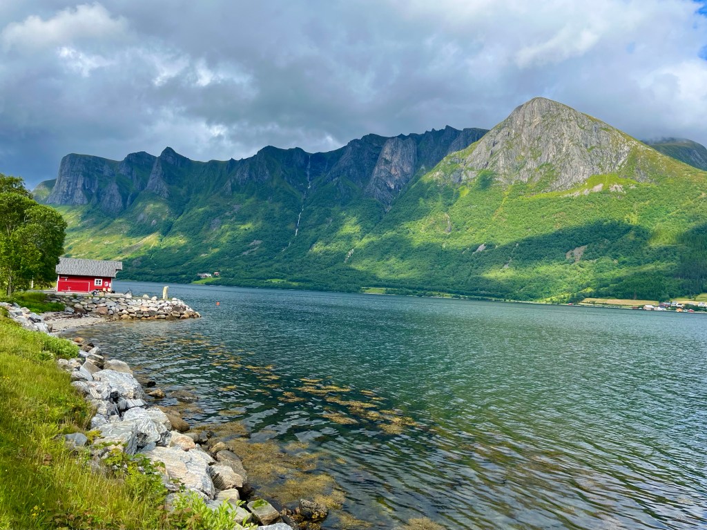 Dropping down to Syvdefjorden, the fantastic mountain scenery, and the light tailwind along this stretch, eased my passage to the next ferry over to the island of Gurskøya.