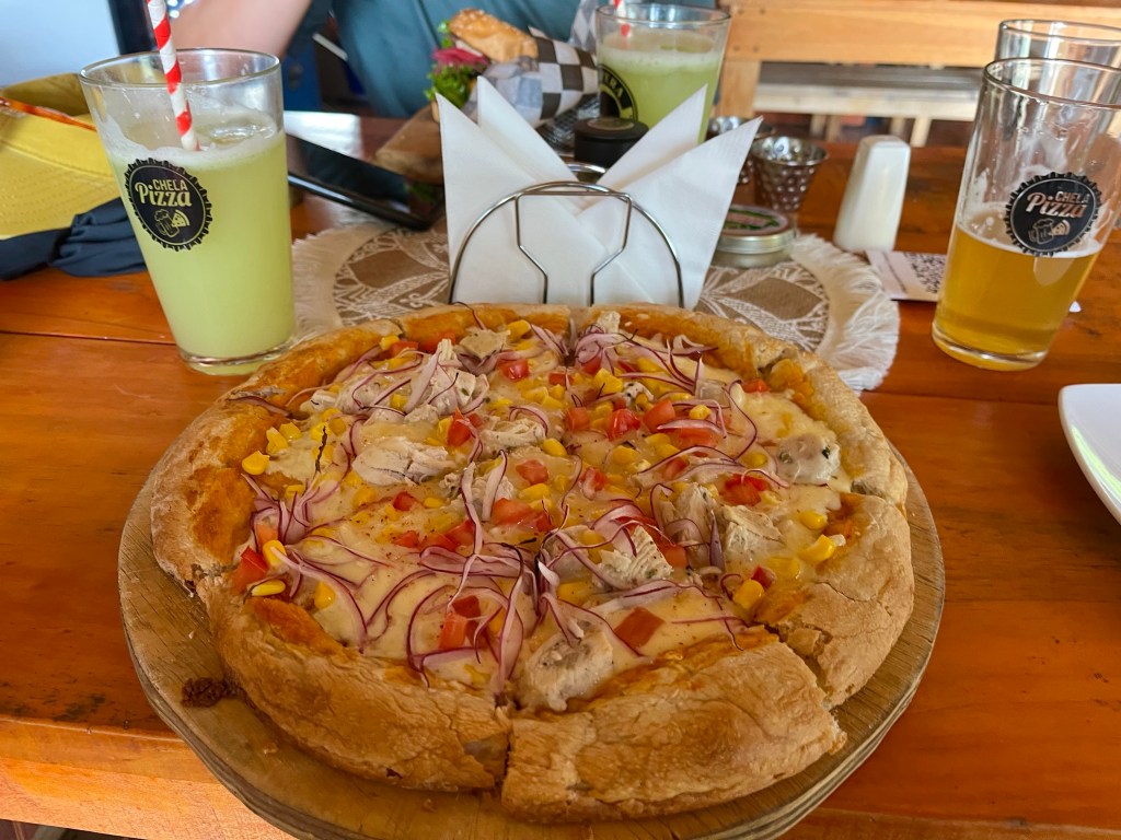 Uninspired by the food trucks on offer, we continued out of town and climbed steeply back up the hill to a pizza restaurant, a short climb that was definitely worth the effort.