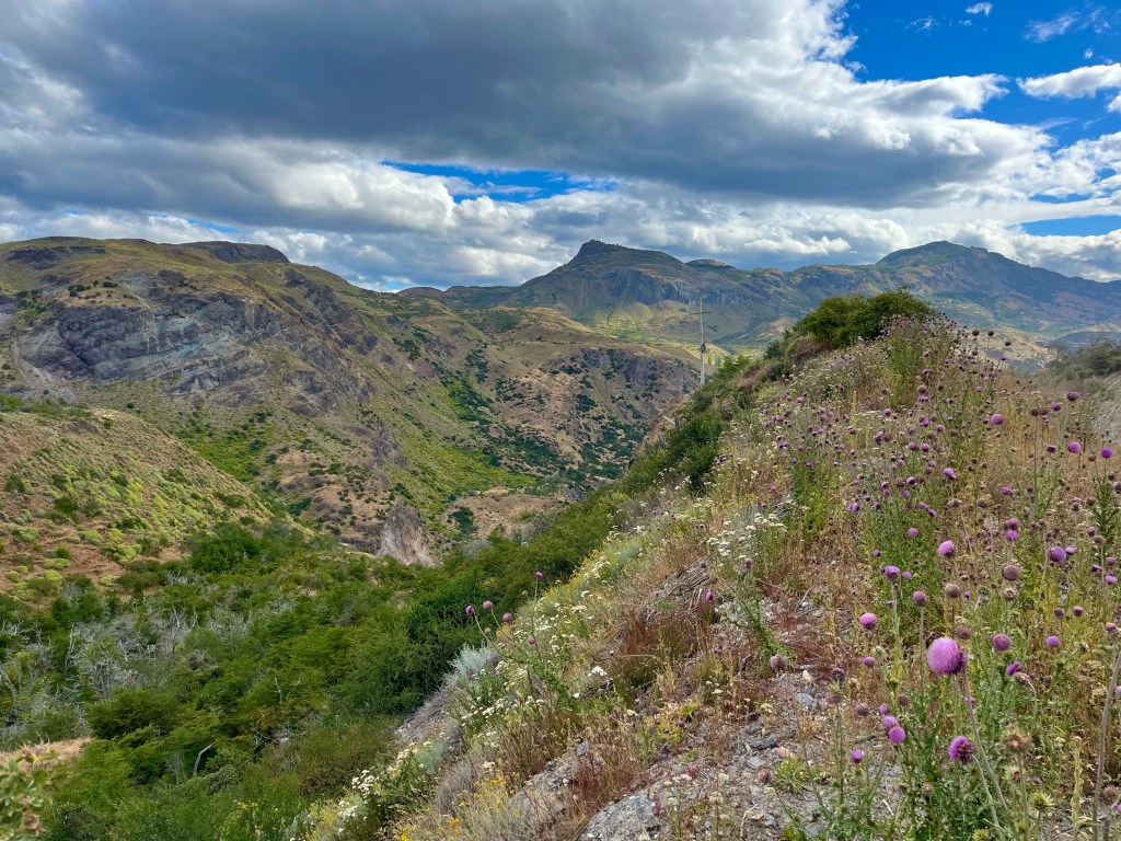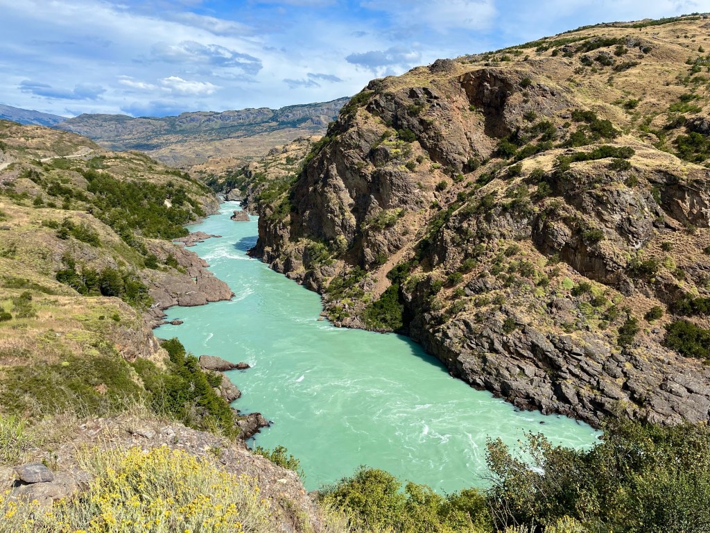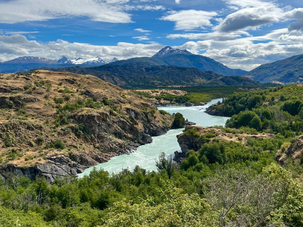 The onwards route followed the Río Baker upriver, not content to stick by its side, the road climbed high above the gorge, through rocky and fertile terrain.