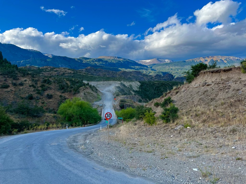 A few more metres of elevation led to a mirador, looking out over the confluence of the rivers Baker and Chacabuco, after which the road seemed to continue eking out every extra metre of elevation gain out of the landscape, even within the last few kilometres before Cochrane, when the highly satisfying ‘Inicio Pavimento’ signalled the beginning of a dream-like concrete surface, the road climbed sharply before dropping down into the town.