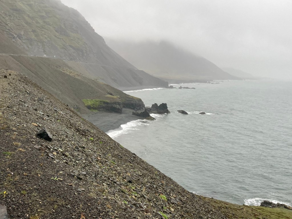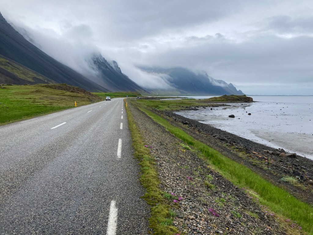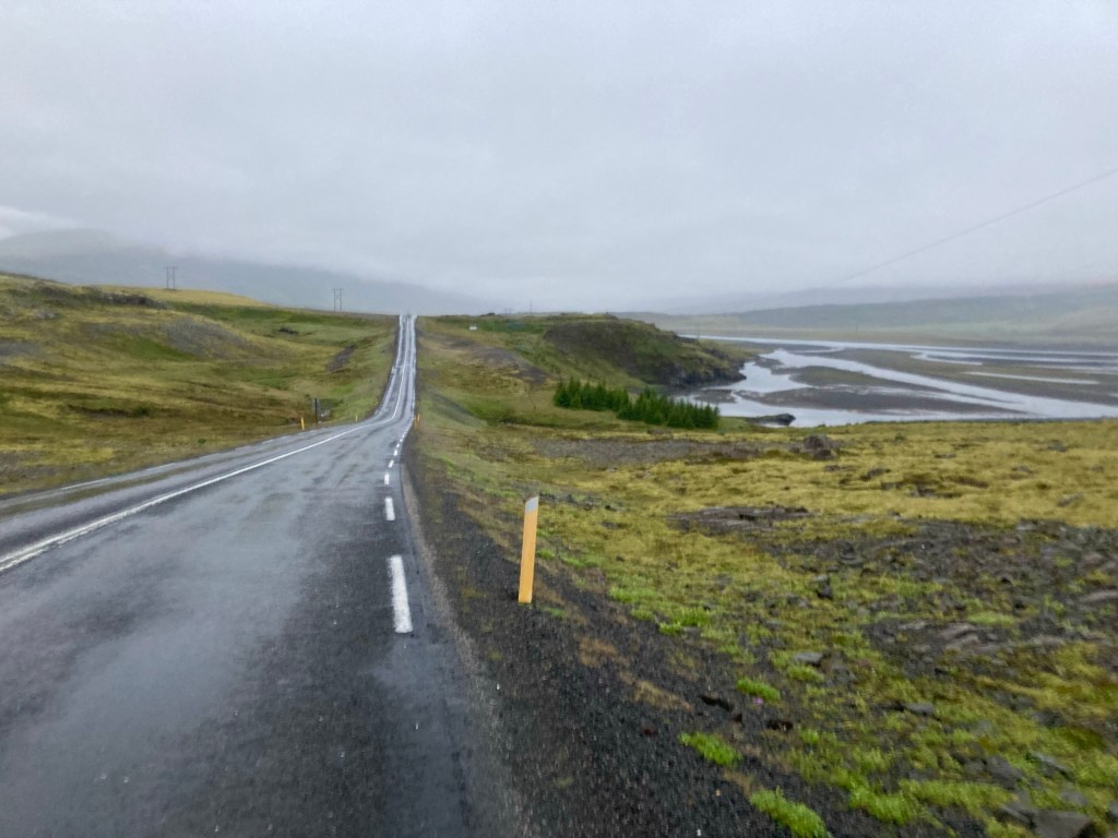 Howling wind and rain battered the post-volcanic landscape, I didn’t want to stay up here for long. But, clearly, that wasn’t my decision to make, and after the road descended a little, it started to climb again, maxing out at over 570 metres, but, this time there was a reward, a 20 mph tailwind. For 15 glorious miles, I was blown down a barely perceptible downhill slope, at over 20 miles an hour.
