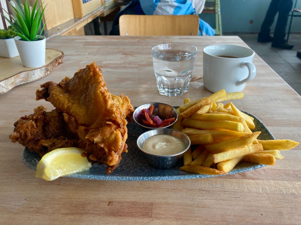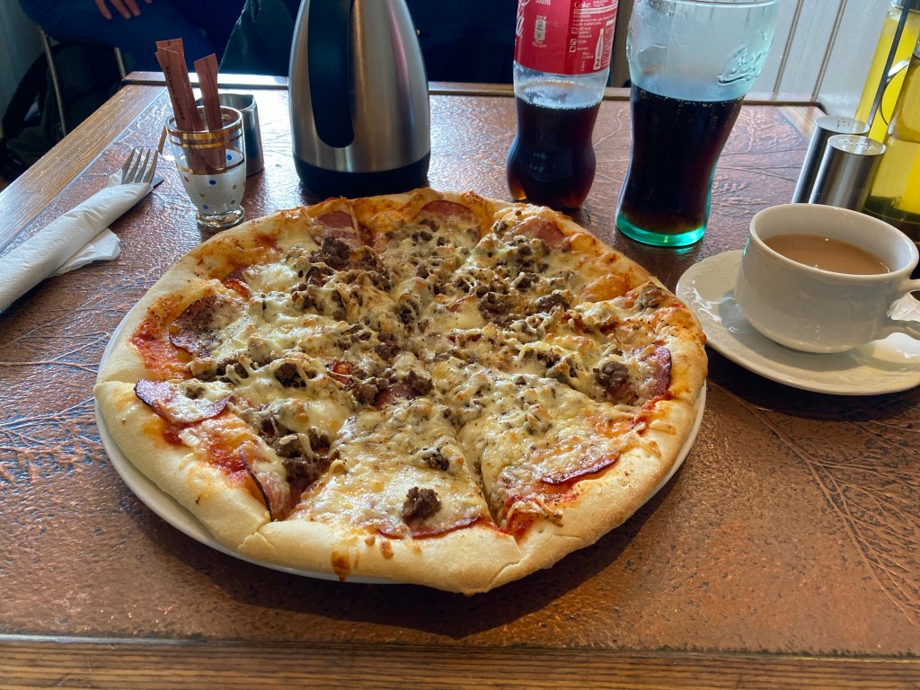 Stepping inside, I was shocked when the ramshackle petrol station outbuilding, 40 miles from the nearest town, was not merely serviceable, but actually quite nice. I ordered most of what they had, which left me with quite a medley. Icelandic lamb soup, a hot dog, and a couple of twisted doughnuts, washed down with refills of coffee.