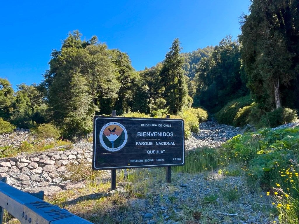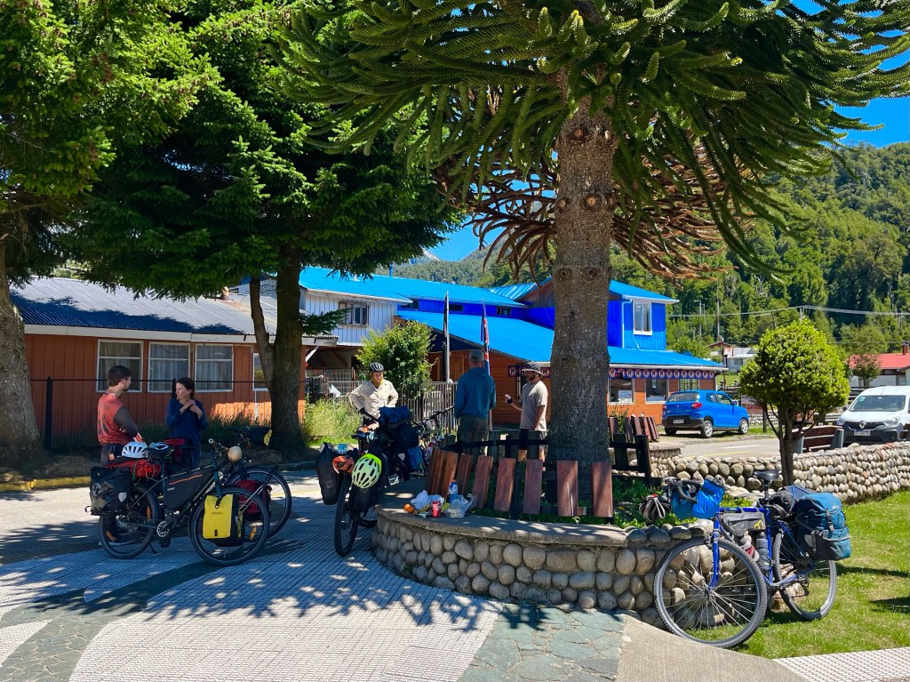 After 8 miles the road ran out, and I stopped to let a little air out of my tyres, to take the edge off the jarring effects of the rocky terrain. In passing Camping Las Toninas, the road turned inland and back into Parque Nacional Queulat, where I spotted a restaurant in the trees, and also the friendly Argentinian from the campsite in Puyuhuapi.