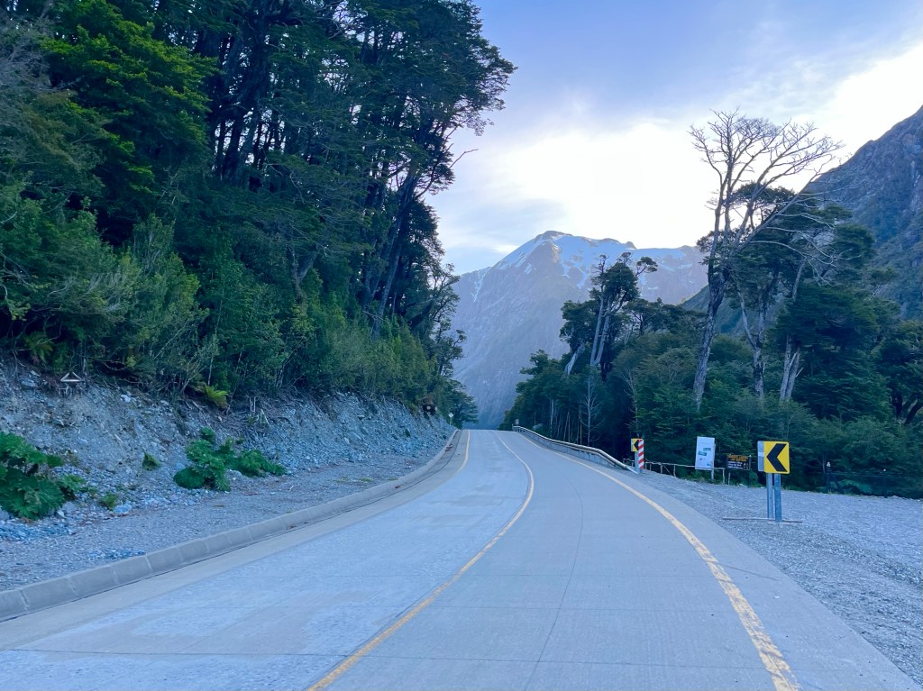 The climb started steeply, before disappearing into first an open tunnel, and then an enclosed tunnel, for which I stopped and put on my lights. As I exited the tunnel at the top, the views down over the Río Simpson were fantastic in the early evening light, and as I continued to force my way up the ever busier road, the surface turned into a sort of poorly-laid monoblock, the sort of surface that the phrase rolling resistance was invented for.