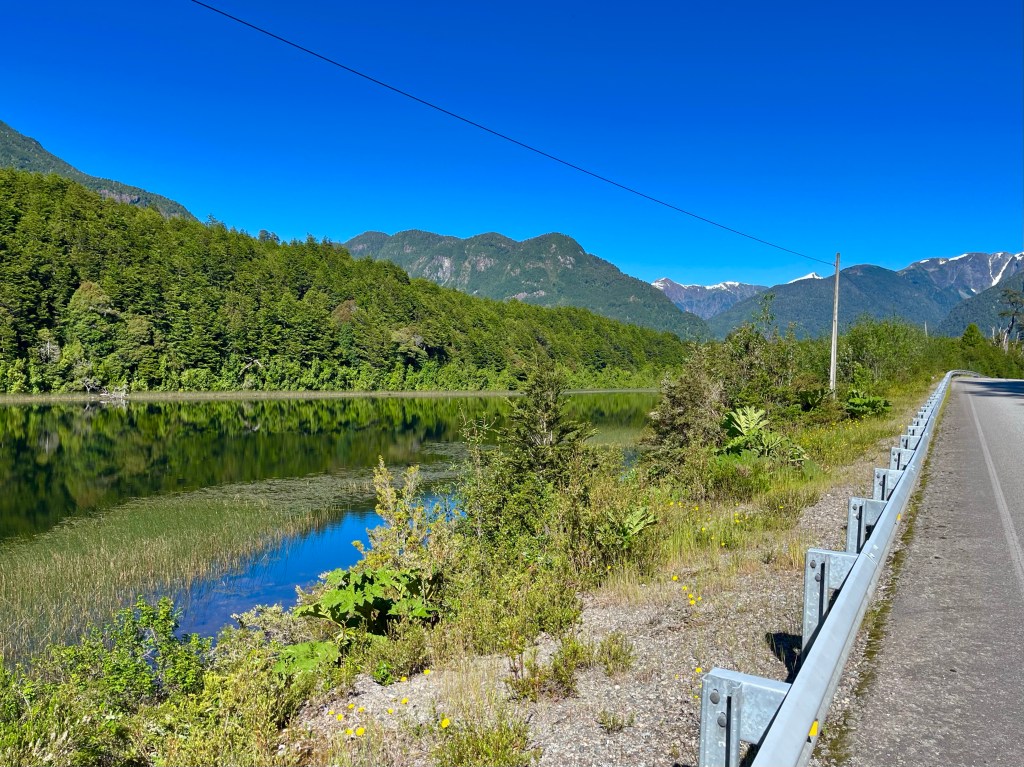 Eventually, I made to leave, and it wasn’t long before I spotted the group of three about to go for a swim, down off the road, in beautiful Lago Verde. It was a hot day and the water looked inviting, but the call of the road was too great, and I was keen to start chipping away at the distance to Mañihuales.