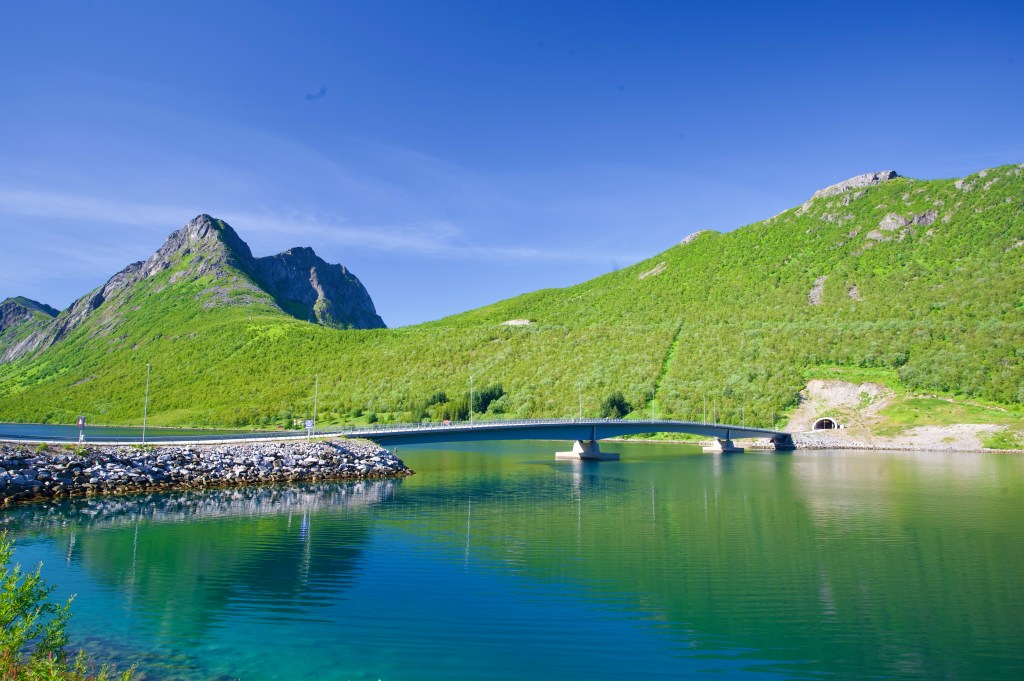 First impressions of Senja, were that it was an altogether hillier beast, and as I pedalled out of Grylleford and along the fjord, I was concerned that there didn’t appear to be any breaches in its steep sides. However, when I got a little closer, I saw that a bridge crossed the fjord up ahead, and led directly into a tunnel, and although the tunnel was a kilometre, uphill, I was confident that the climb would’ve been a lot worse if it wasn’t there.