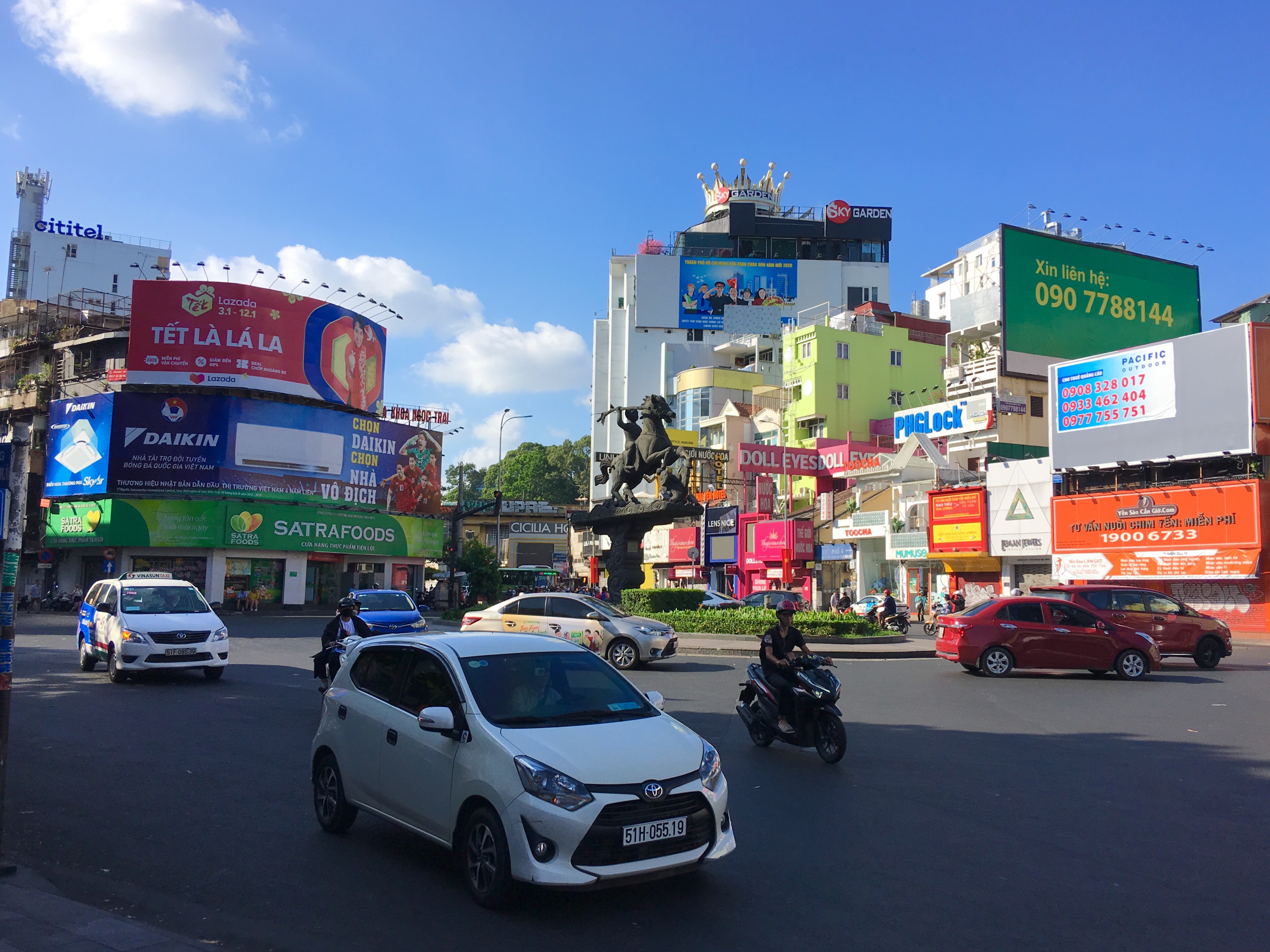 Eventually, I found myself on busier roads as the road crossed a huge roundabout under a bridge, then crossed the Sai Gon river into District 1.