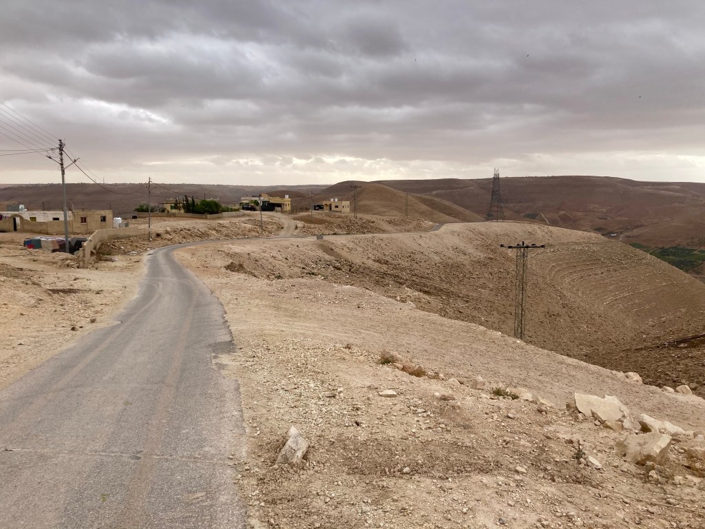 Having fixed the issue, I rolled out into the rain, the water teaming down the hill beside me as I made my way back towards the highway. Carrying on out of town, I passed through some small villages, dismayed that my higher gears were stuttering, fortunately my lower gears seemed to be working well and as I had the near 1000m Wadi Mujib to climb out of later, that was probably for the best.