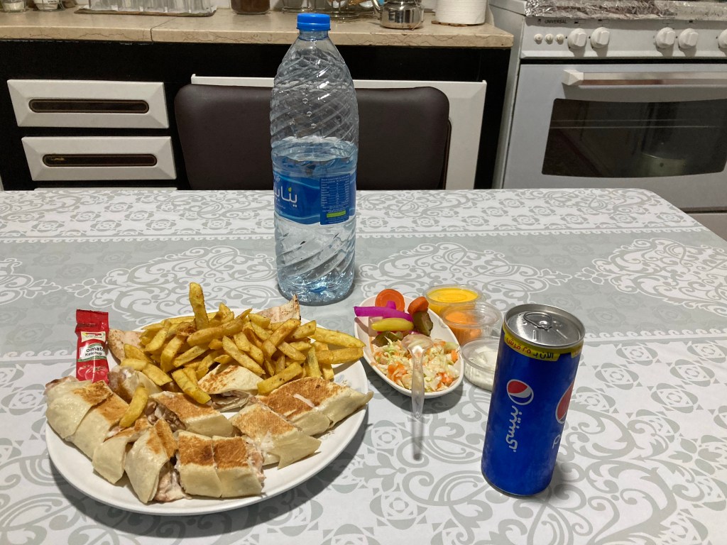 At 9 o’clock, I rang the door of The Old House guesthouse, situated just below Karak castle on a rocky outcrop, drenched and covered with mud, I apologised for my late arrival, ‘it took a little longer than expected’, I said. Then my host uttered the immortal words, ‘would you like some dinner?’ Rustling up some delectable chicken shawarma and fries, while I was in the shower. Do you like Pespi? He enquired, before informing me that he was leaving me to it, ‘is there anything else that you need’? Thank you, no, I think I’ll be fine.