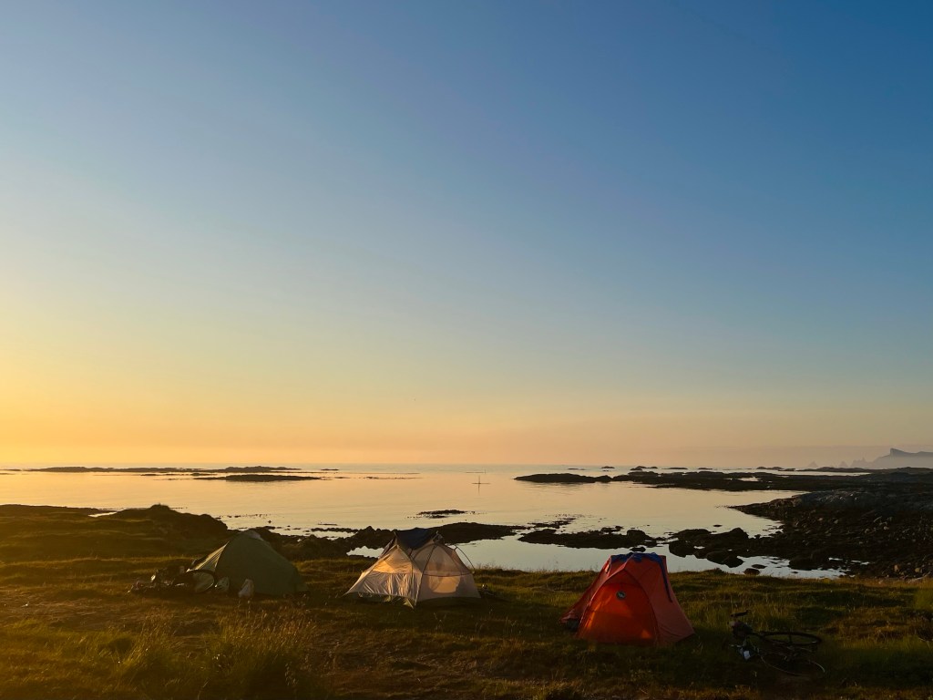 While I was finishing setting up camp for the evening, another cyclist turned up looking for a flat piece of ground on which to pitch his tent, not an easy task at LOVE (Lofoten and Vesterålen Islands) Campsite. He was called Hans, and he was from Belgium, he was a seasoned touring cyclist who, after 30,000 km of use, was contemplating swapping out some of the componentry on his fancy Rohloff hub and gates belt drive touring bike set up. He’d never flown with his bike though, so he was inspired by the fact that I’d taken my bike to Vietnam and Morocco.