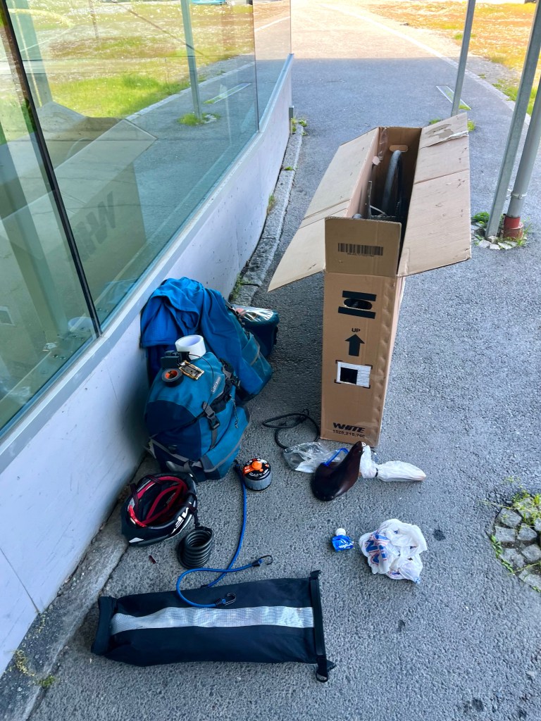With nothing else for it, I dragged the large empty cardboard box back outside and over to where I’d left my bike. One thing was for certain, my 1000+ mile ride down the length of Norway, from Bergen to Tromsø, had finished here, outside a shopping centre on the outskirts of the city.