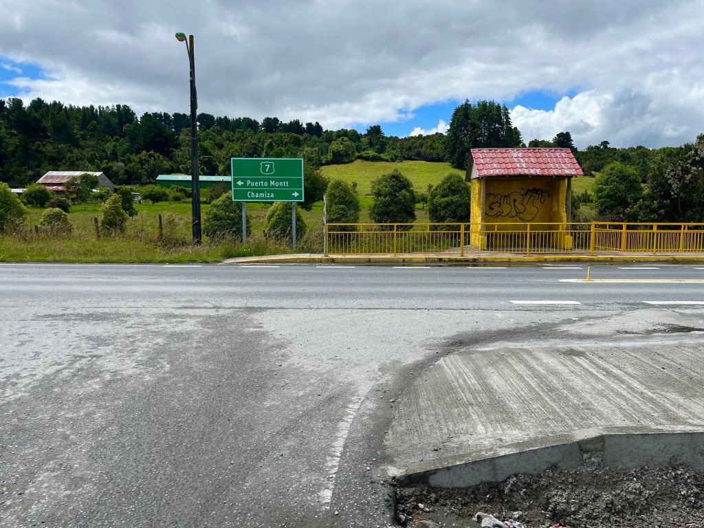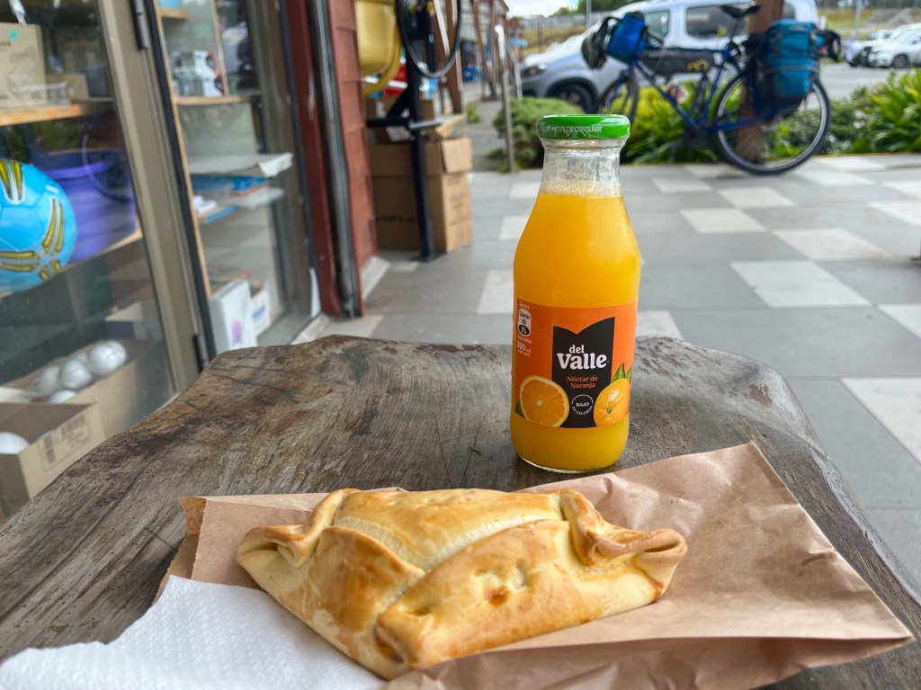 Eventually, I rejoined the main road, Highway 7, and as I stopped at a bus stop to have a snack, the pair of cyclists that I’d seen going the other way earlier on, cycled past, having presumably also encountered the large puddle on the dirt road, but taken evasive action. Shortly after I stopped for my first Empanada of the ride, similar to pasties, this one was of the chicken and cheese variety and was very pleasant.